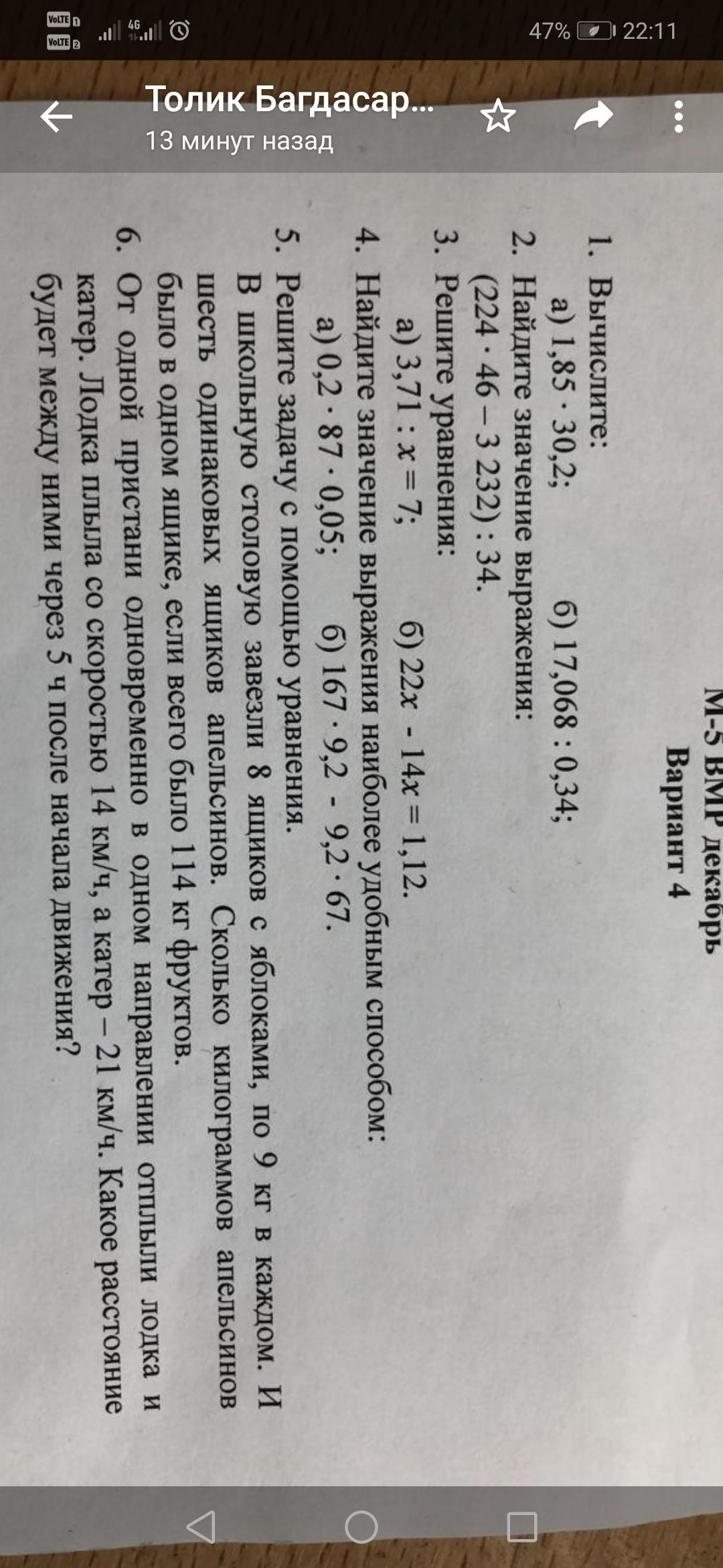 Ответ: 1) а. 1,85 • 30,2= 55,87