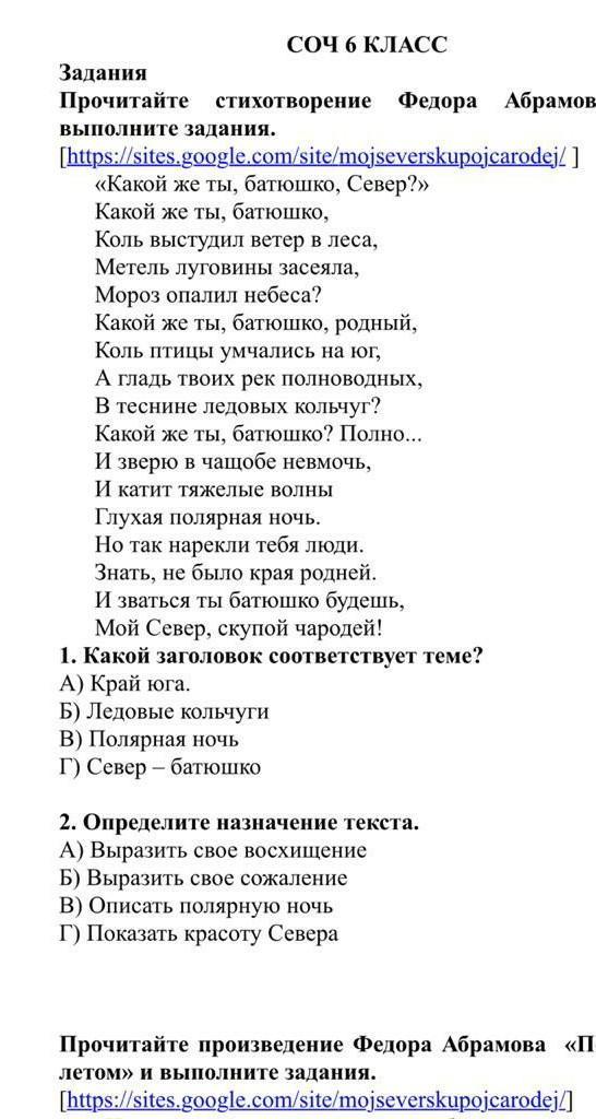 Мне кажеться в этом тексте очень хорошо переданна красота Севера. Автор называет север батюшкой. Поэтому я и решила назвать его север батюшко и писатель рассказывает как же красив север имнно из-за этого я ришила что это я решла что определения текста это показать красоту Севера.