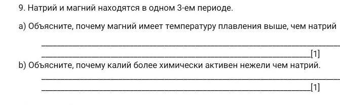 а) благодаря более сильной связи ионов из-за большого количества электронов магний имеет температуру плавления большую натрий