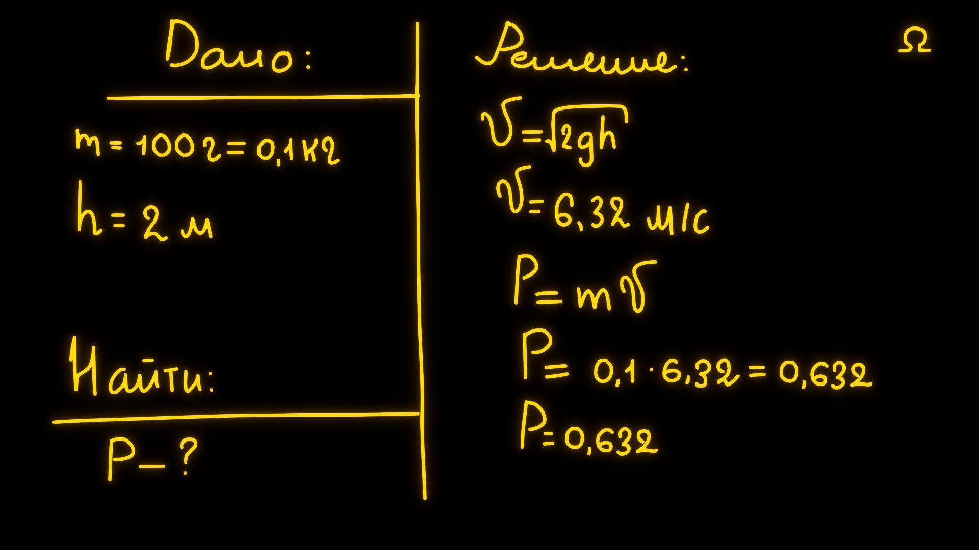 Мяч, массой 100г упал с высоты 2 м. Какой импульс имел мяч в момент удара о пол?