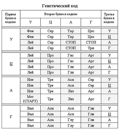 Определите, пользуясь таблицей генетического кода возможные триплеты ДНК, которые кодируют этот фрагмент белка. Ответ запишите в таблицу.