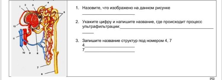 Ответ:1.Строение нефрона. 3.4-мочевые каналы, 7-петля нефрона.