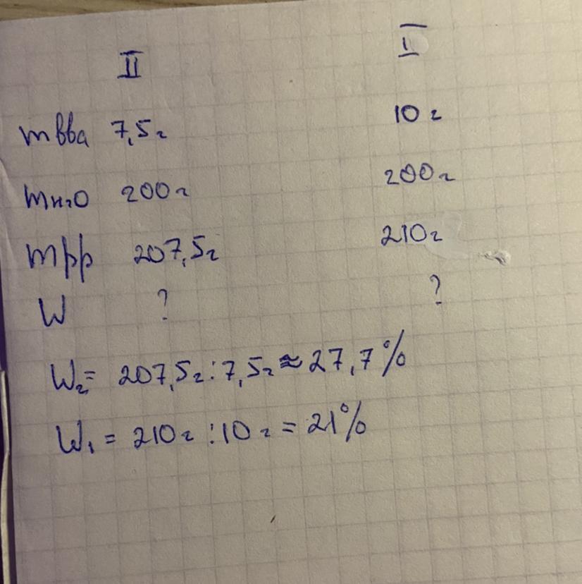Арман взял два стакана и положил в первый стакан две ложки, а во второй - полторы ложки сахара. Масса воды в стакане - 200 граммов, а вес одной столовой ложки сахара - 5 граммов. Определите массовую долю сахара в каждой чашке