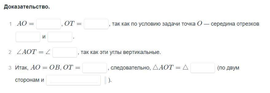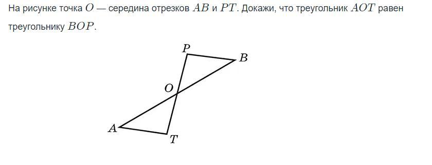 1. АО=О-В, так как по условию задачи О - середина отрезков АВ и РТ.