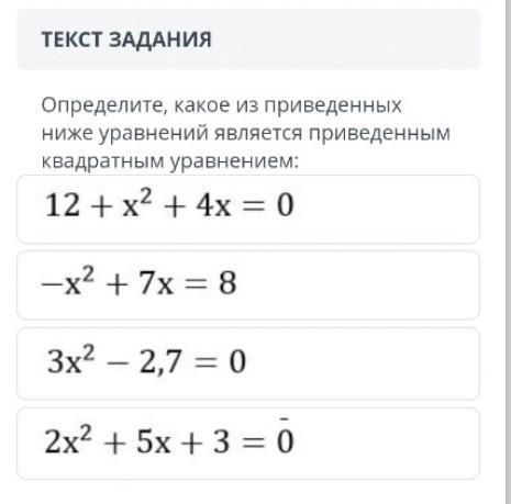 Определите, какое из приведенных ниже уравнений является приведенным квадратным уравнением ( фото).