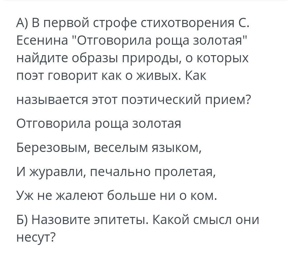 олицетворение : отговорила роща.,не жалеют больше ни о ком( журавли)