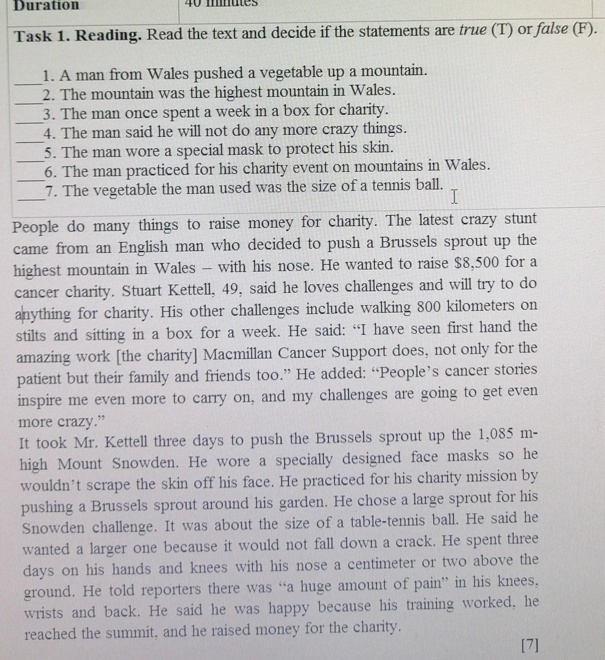 Срочно! Даю все балы что есть Task 1. Reading. Read the text and decide if the statements are true (T) or false (F).