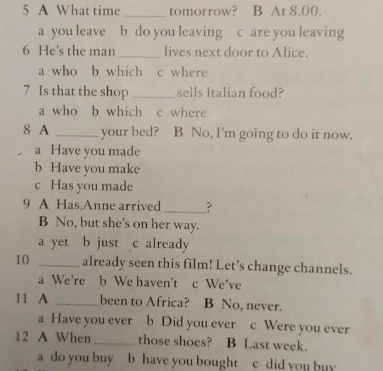 5 с, 6а, 7с, 8а,9 хз, 10b,11a,12c,