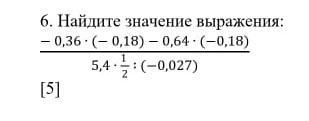 Ответ:-0.18*(-0.36-0.64) дробь 27\5*1\2*(-1000\27)=-0.18*(-1) дробь (-100)=0.18\-100=-0.0018Пошаговое