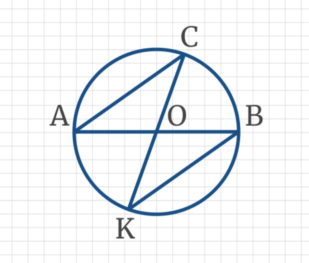 На рисунке хорды АС║КВ, АВ и СК – диаметры окружности, с центром в точке О. Укажите пары накрест лежащих углов.