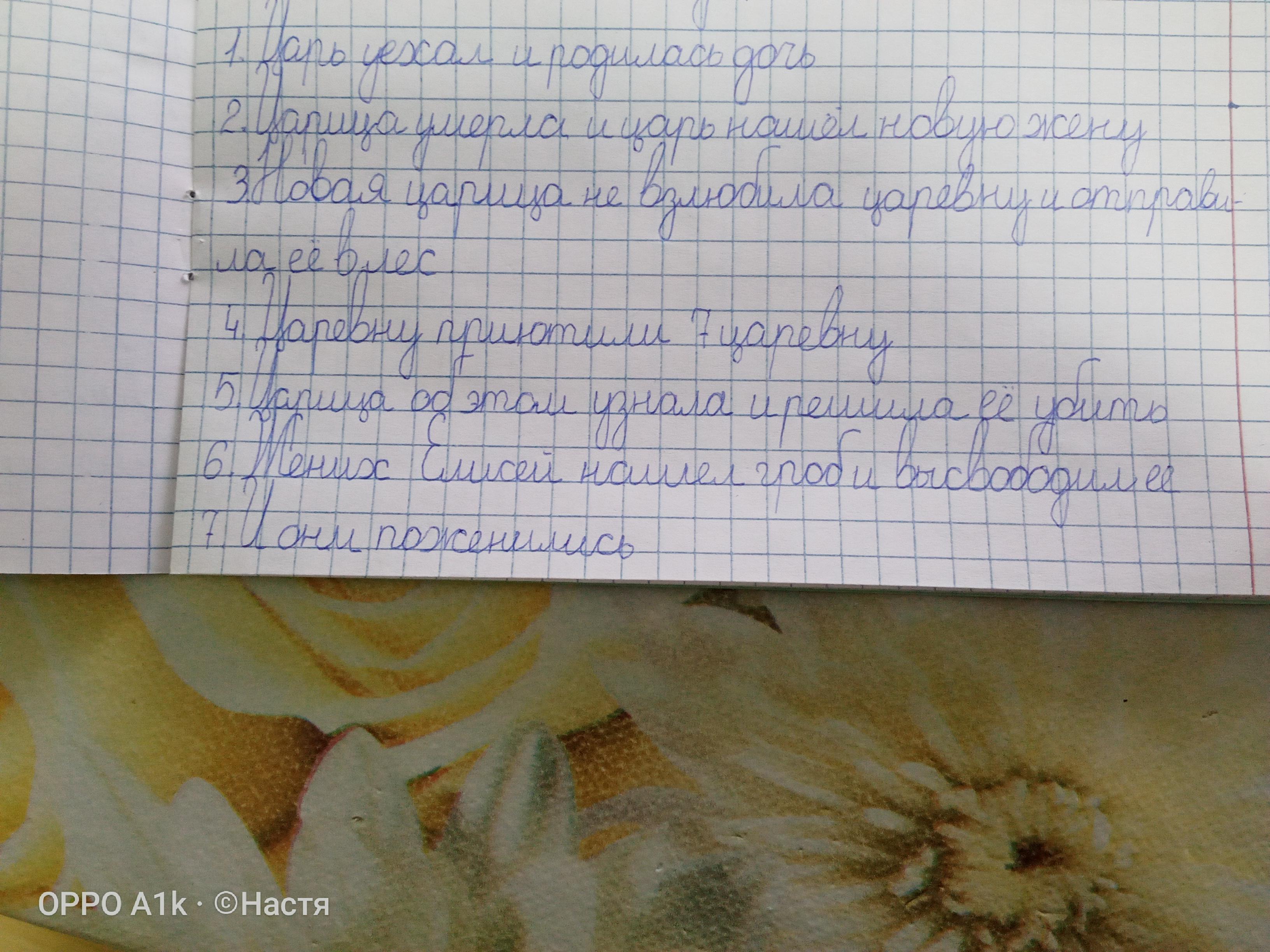 1.Вспомните содержание «Сказки о мертвой царевне и семи богатырях» А.С. Пушкина и перечислите семь главных событий данного произведения в соответствии с композицией сказки: