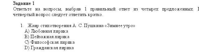 Ответьте на вопросы выбрав один правильный ответ из четырёх предложенных на четвёртый вопрос следует ответить кратко