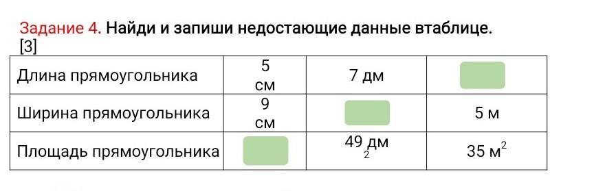 Задание 4. Найди и запиши недостающие данные втаблице. [3]