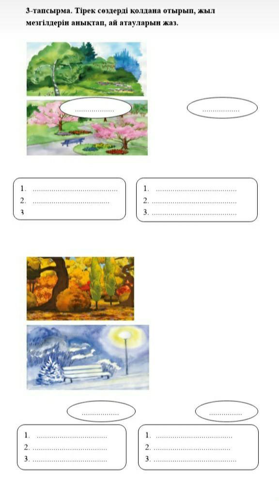 Күздің айлары: Қыркүйек, қазан қараша. Қыстың айлары:желтоқсан,қантар,ақпан.