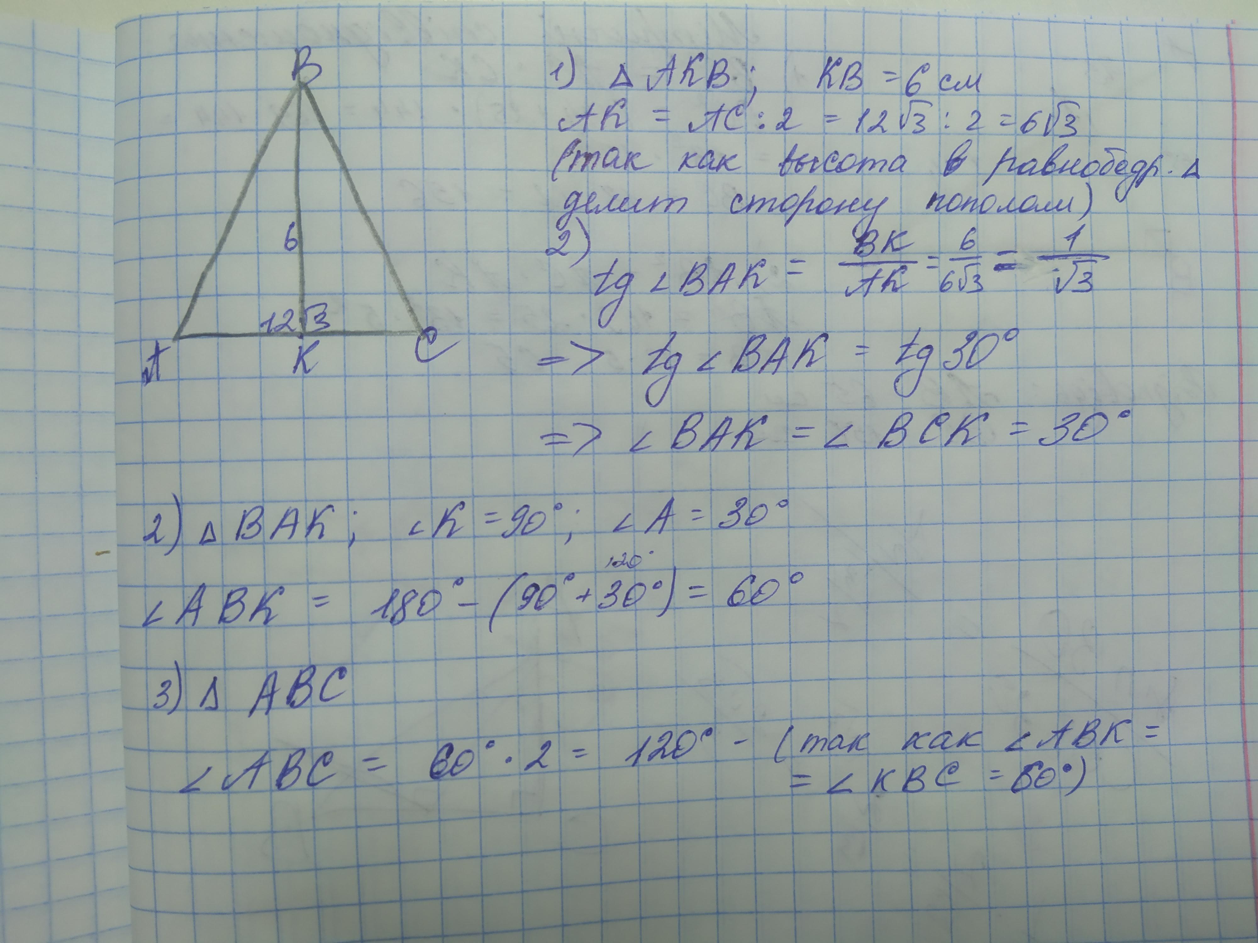 Проверка: (куты треугольника в сумме 180°) 30°+30°+120°=180°