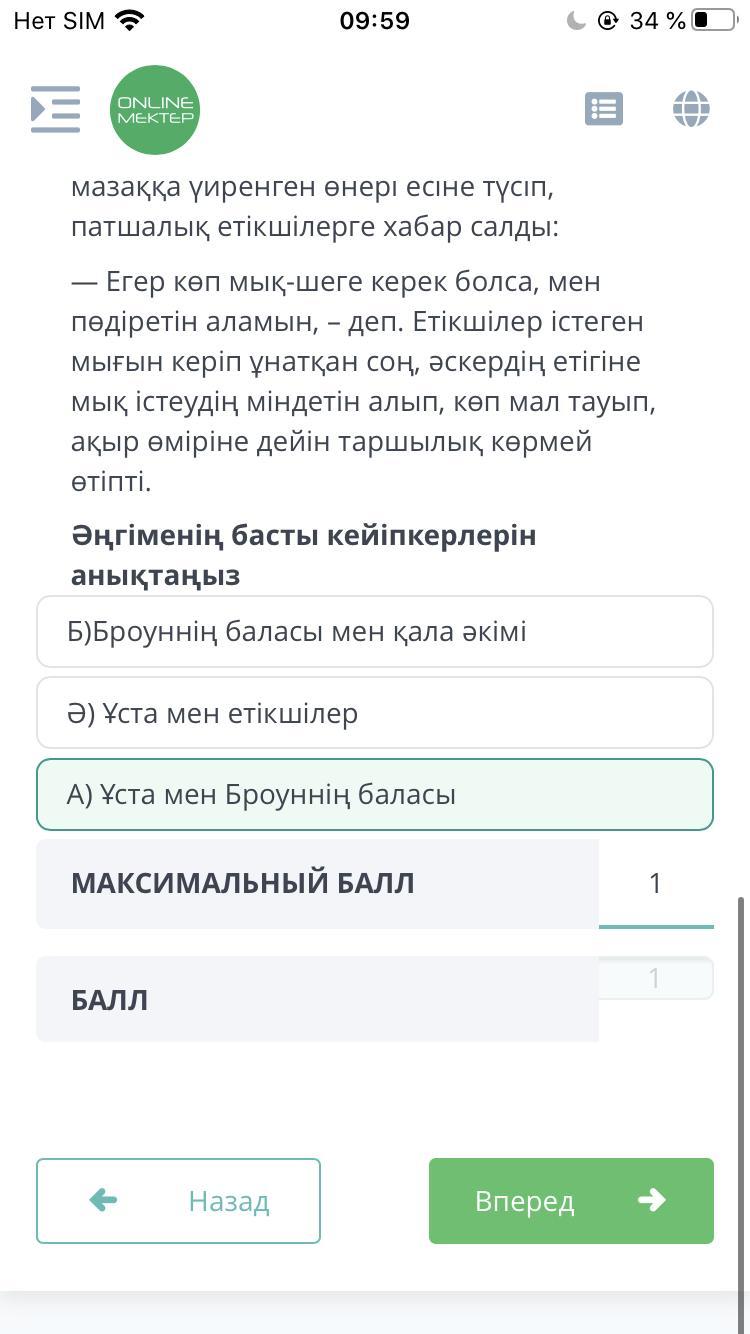 Мәтінді оқып, төмендегі тапсырманы орындаңыз Бір қарт ұста күні-түні тынбай іс соғып отырады екен. Оған көрші, заманындағы бір зор бай, Броун дегеннің баласы ойнап жүріп қызыққа күнде ұстаға келіп, іс соққанына қарап тұрады екен. Бір күні ұста мырзаға айтты: Төрем, қарап тұрғанша, тым болмаса, шеге соғуды үйренсейші, кім біледі, бір күндерде сол өнердің де керегі болар. Бала нем кетеді деп, күнде