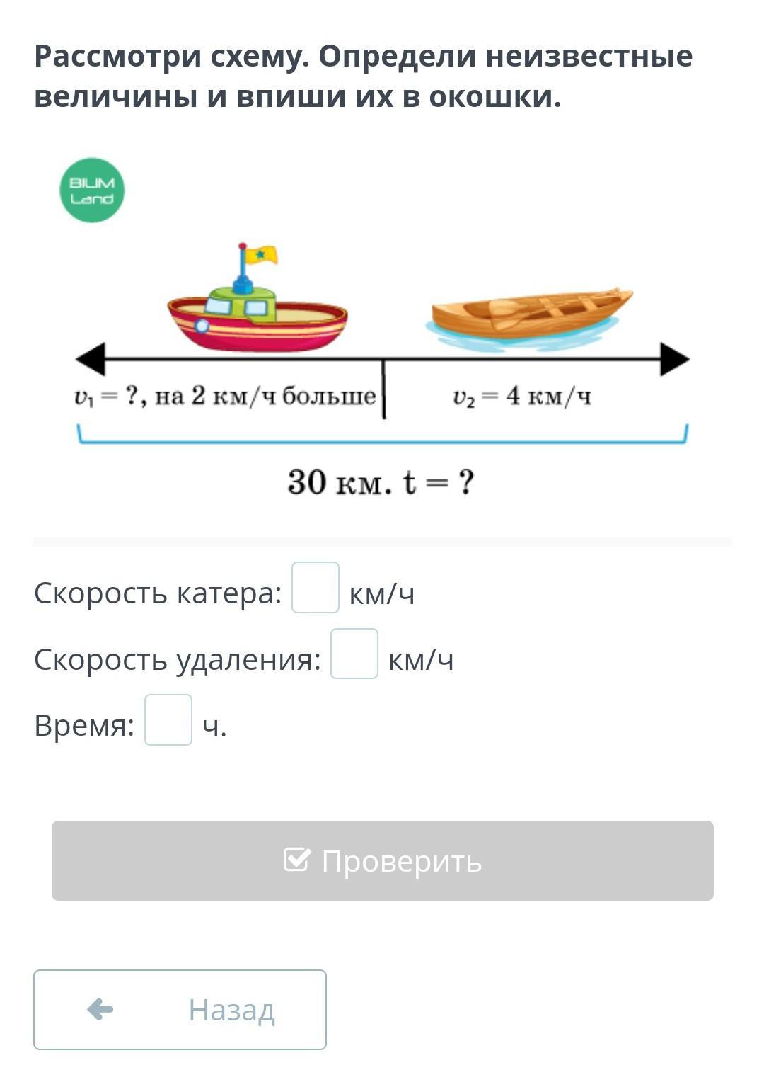 Скорость катера: 4+2 = 6 км/ч