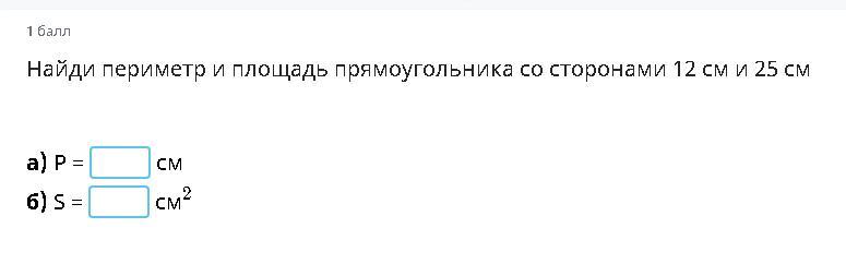 12+12+25+25=74 это периметр 12×25=300 это площать