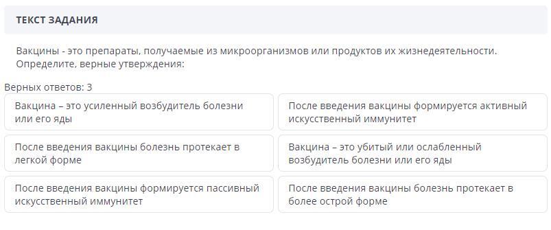 Вакцины - это препараты, получаемые из микроорганизмов или продуктов их жизнедеятельности. Определите, верные утверждения: