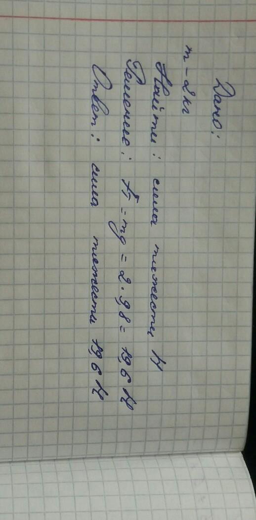 Fт = mg = 2 * 9,8 = 19,6 Н