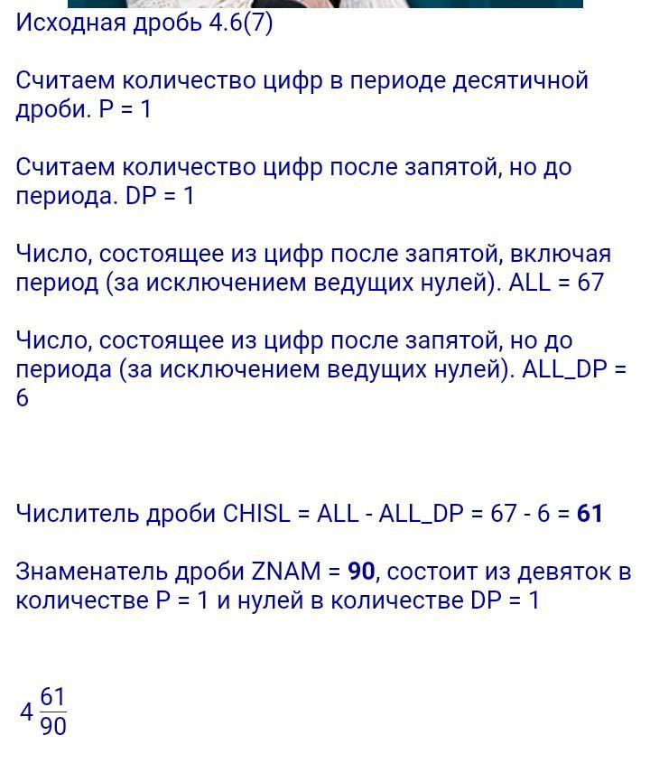 4. Представьте бесконечную десятичную периодическую дробь 4,6(7) в виде обыкновенной.​