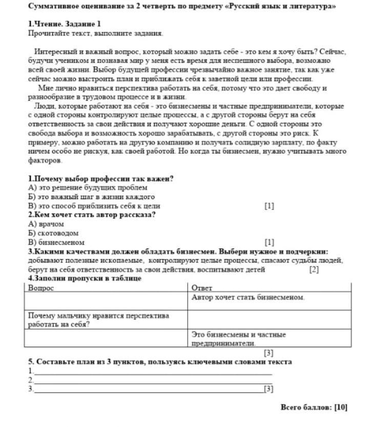 5. Составьте план из 3 пунктов, польуясь ключеными словами текста 1. Всeго баллов: [10]