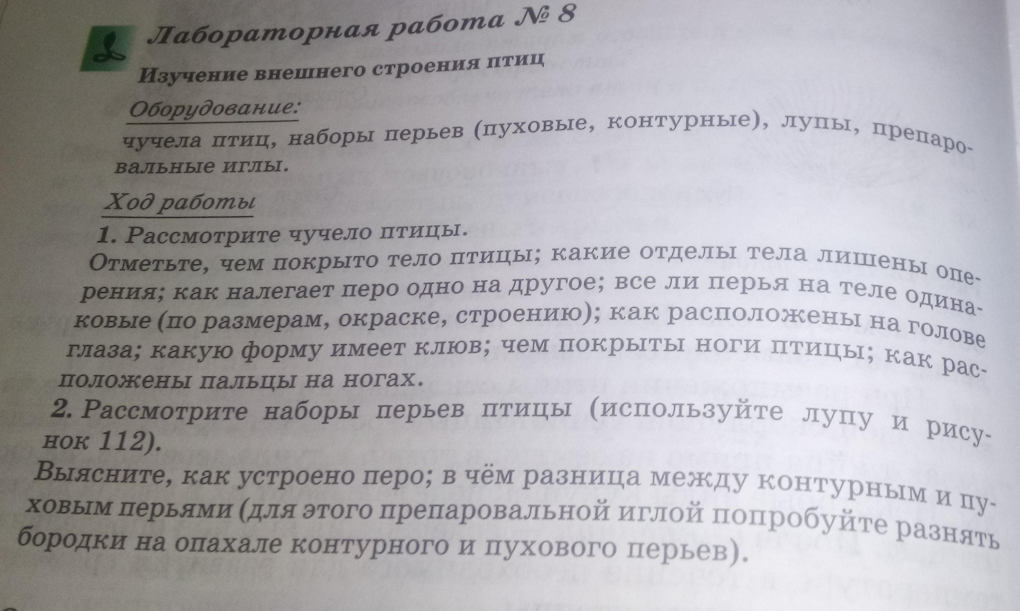 1) Тело птицы покрыто перьями. Оперения лишены некоторые части головы, например, клюв и нижние конечности. Перья перекрывают одно другое, образуя некоторое подобие сплошного покрова. Перья на теле птицы имеют несколько различающееся строение. Глаза на голове расположены на максимальном удалении друг от друга на одной линии, таким образом, чтобы обеспечить птице наибольший обзор. Клюв имеет пирамидальную форму, основание его направлено в сторону черепа птицы. Ноги Птицы покрыты ороговевшей кожей. Пальцы на ногах расположены таким образом, что один из них противопоставлен всем остальным, которые расположены неким подобием веера.2) В строении пера выделяют