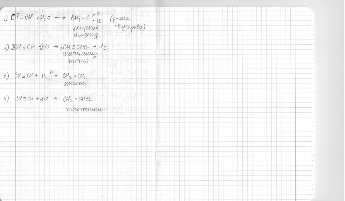 С какими из перечисленных веществ вступит в реакцию ацетилен:вода,натрий,водород,хлороводород,кислород?