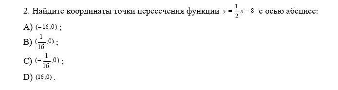 Найдите координаты точки пересечения функции с осью абсцисс: