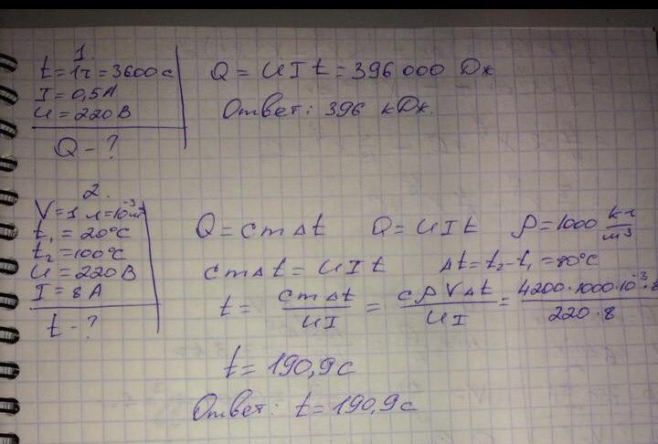 Если ток в лампе I = 0,5 А, а напряжение U = 220 В, какое количество тепла рассеивается лампочкой за t = 1 час?