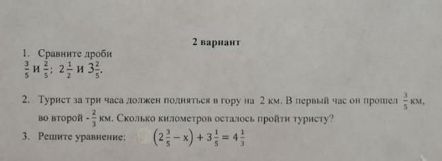 2. 2-(3/5 +2/3)=2-(9/15 +10/15)=2 -19/15=30/15 -19/15=11/15 км