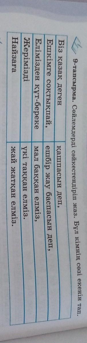 9-тапсырма. Сөйлемдерді сәйкестендіріп жаз. Бұл кімнің сөзі екенін тап.