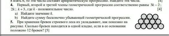 для k₂ = 6 b₁=3*6-2=16; b₂=2*6=12; b₃=6+3= 9 - это бесконечно убывающая геометрическая прогрессия, ее сумма