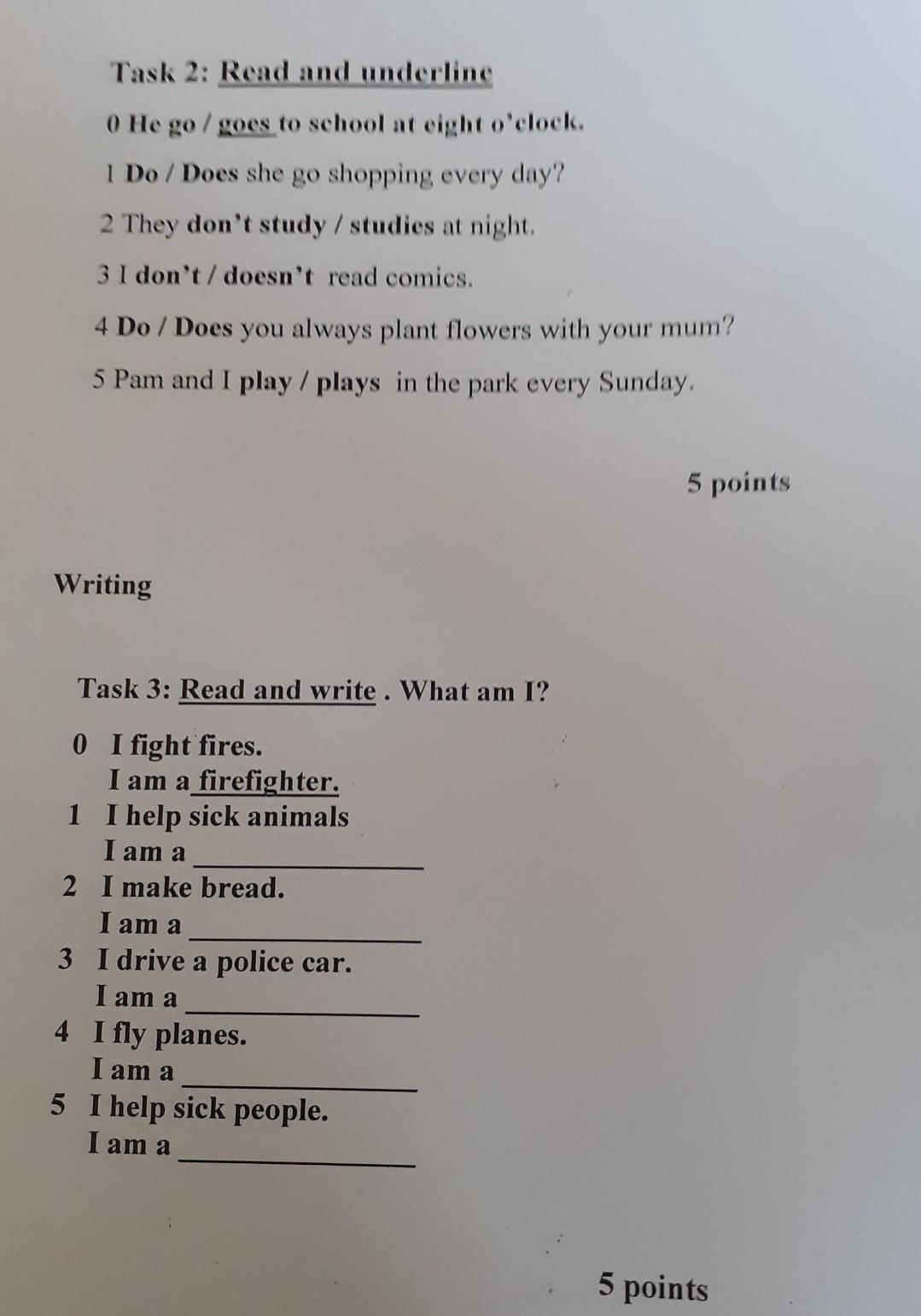 5 Pam and I play / plays in the park every Sunday.