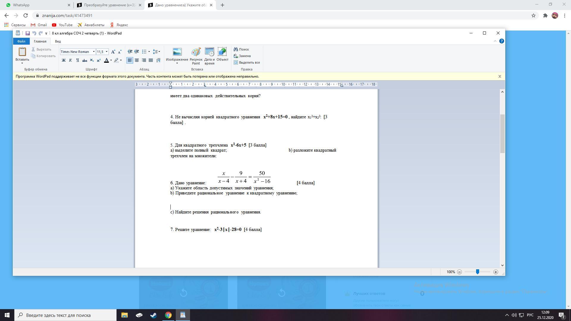 чтобы получить квадратный трехчлен в левой части уравнения, найдем значение, равное половине квадрата