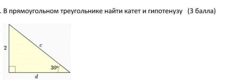 Гипотенуза с в два раза больше катета лежащего против угла 30° ⇒ с=2*2=4;