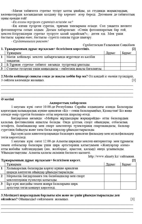 3) бұрыс.(суретке түсіруші үшін маңыздысы, еңбегінің жақсы бағалануы емес, оған сол жүмыс шабыт беретіндігі маңызды.)