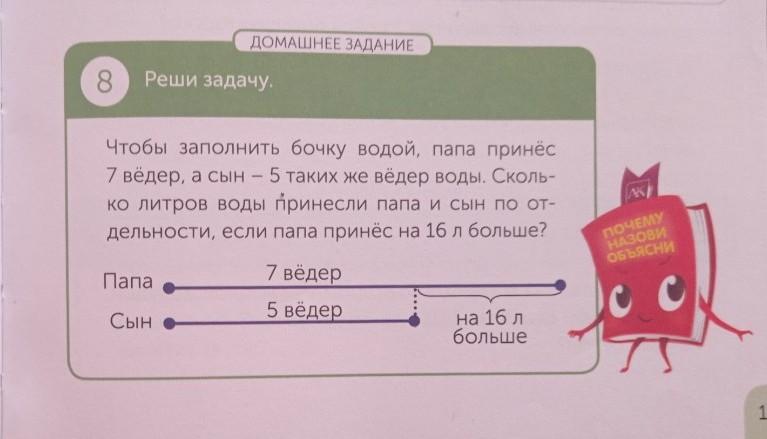 ответ:56 литров воды принес отец. 40 литров воды принес сын.