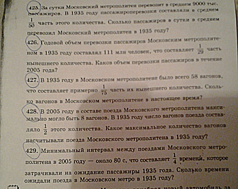 426-целое по части, 425-часть от целого, 427-целое по части,428-часть от целого, 429-целое по части