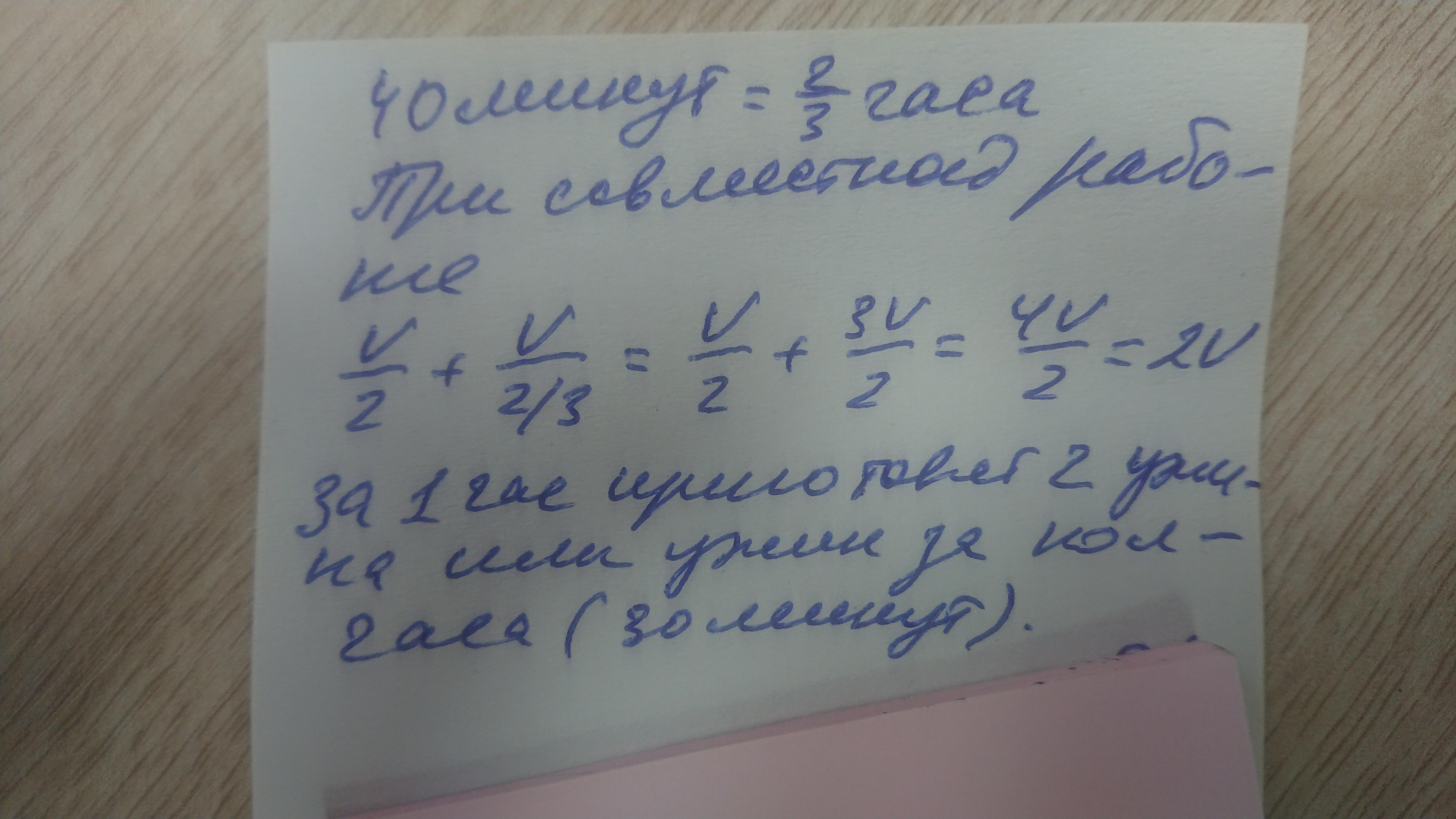 Ответ: за 30 минут, при совместной работе производительности суммирутся. См фото.