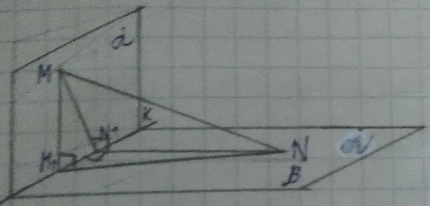 Точка M принадлежит одной из двух взаимно перпендикулярных плоскостей, точка N другой из них. Расстояние от данных точек до линии пересечения плоскостей : MM1= 18сm а NN1=11см . Найдите M1,N1 если MN=25 cm