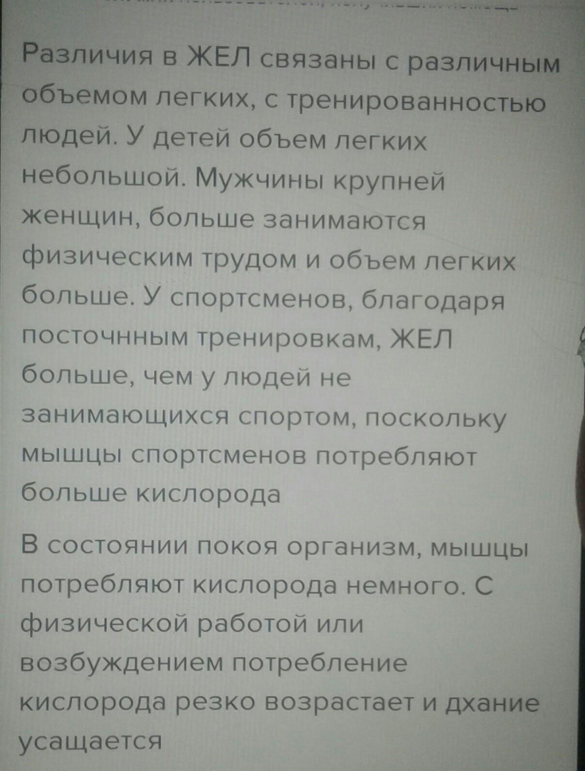 Объясните, от чего зависит разный показатель жизненного объема легких у людей разных категорий и возрастов. Опишите, минутный объем дыхания при физических нагрузках и в состоянии покоя