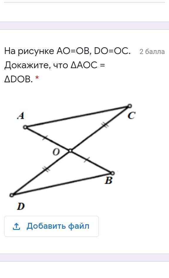 <АОС=<ДОВ вертикальные углы. Первый признак равенства треугольников.