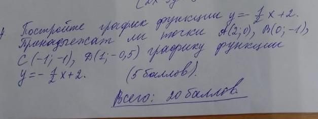 4 постройте график функции у=1/2х+2 принадлежит ли точки А(2;0) В(0;-1) С(-1;-1) Д(-1;-0,5) графику функции у=-1/2х+2