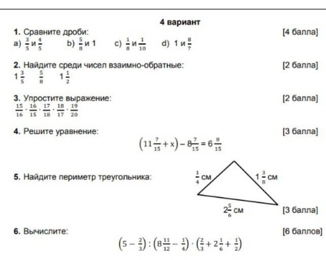 5)1/4+1 3/8+2 5/6=1+1 6/16+2 5/6=2 6/16+2 5/6=2 12/72+2 60/72=4 72/72=5