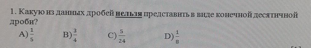 1. Какую из данных дробей нельзя представить в виде конечной десятичной
