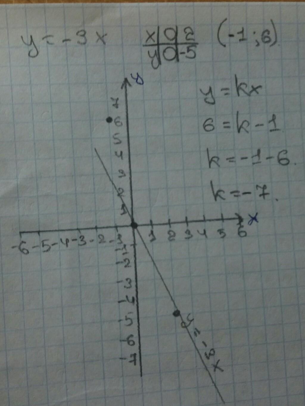 через точку (-1; 6) и параллелен графику функции y = -3x. *