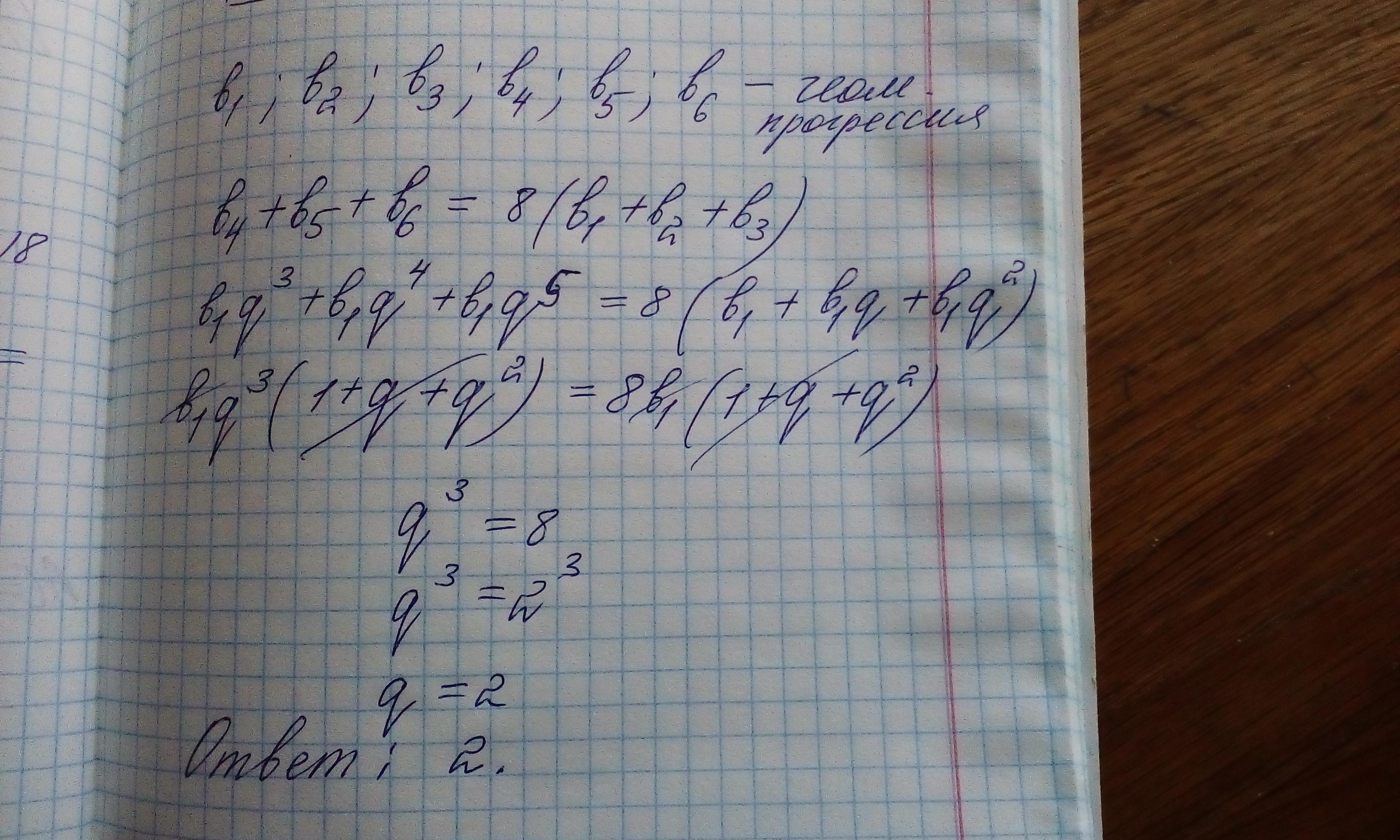 Если геометрическая прогрессия содержит шесть членов, а сумма первых трех членов, как известно, в 8 раз меньше суммы последних трех членов, найдите кратность.