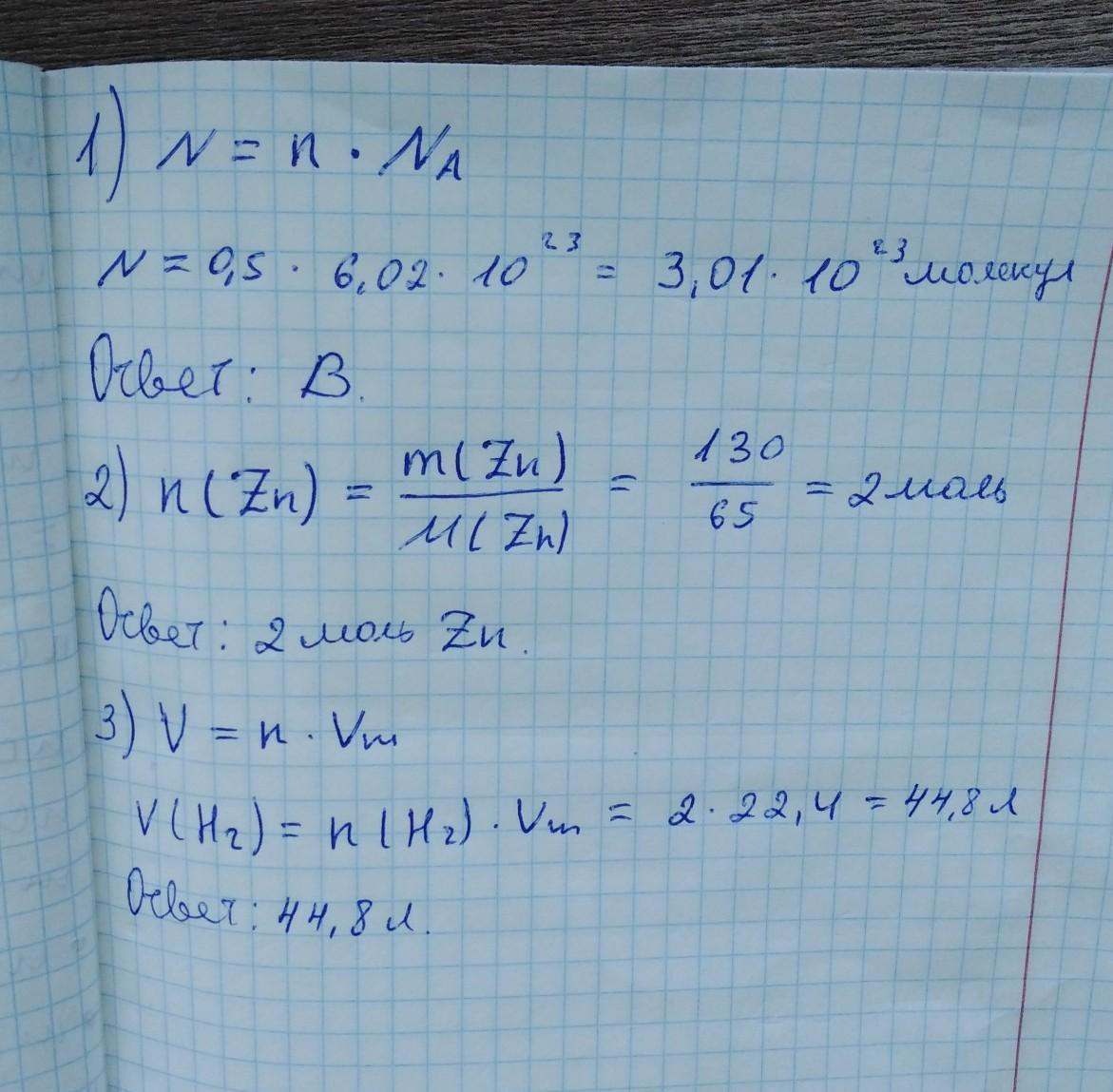 1. Какое число молекул водорода содержится в 0,5 моль? [3]