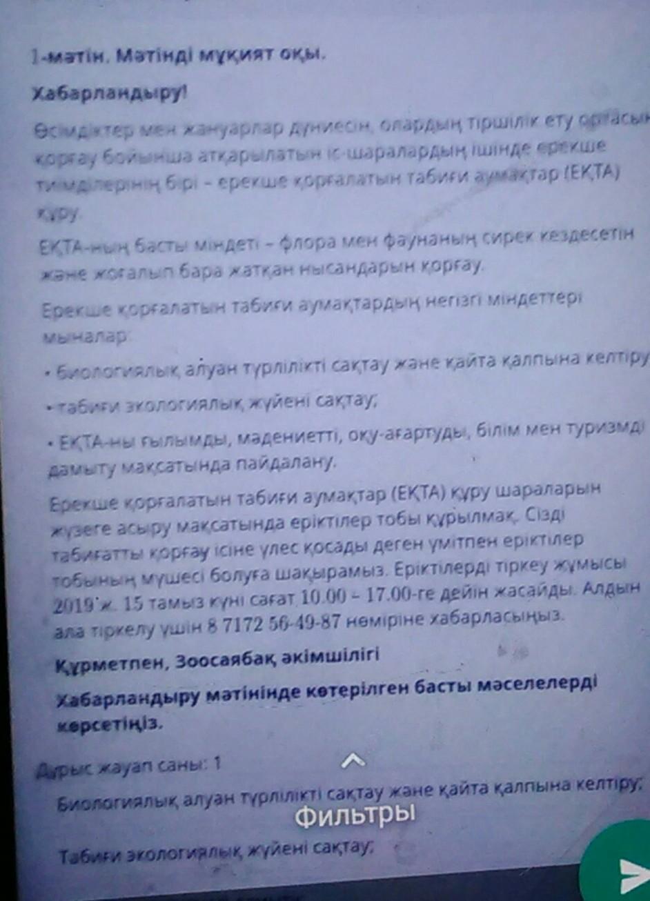 Құрметпен, Зоосаябақ әкімшілігі. Хабарландыру мәтінінде көрсетіңіз. Дұрыс жауап саны : 1 Биологиялық алуан түрлілікті сақтау және қайта қалпына келтіру;